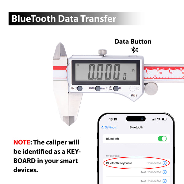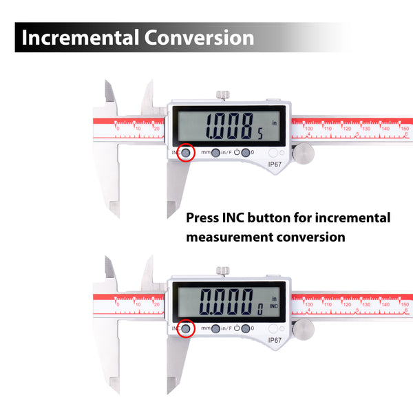 VINCA DIPA-0605B 0-6 Inch/150mm, Inch/Metric/Fraction Electronic IP67 Bluetooth Digital Caliper